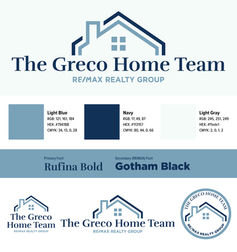 This project included a set of similar but distinct brands for Rich Greco and his daughter, Sam. The two styles utilize similar fonts and a shared dark blue to tie them together, while their accompanying colors and logo styles set them apart from each other.