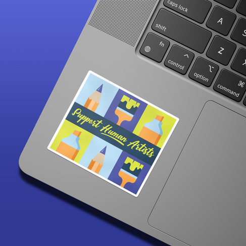 I'll be completely honest - the target audience for this design is myself. AI came up at my day job, and I decided that I wanted everyone in the office to know where I stand on the issue. Thus, the "Support Human Artists" design was born. One of my favorite color palettes and a cute free script later, and I've got a sample car magnet on the way.